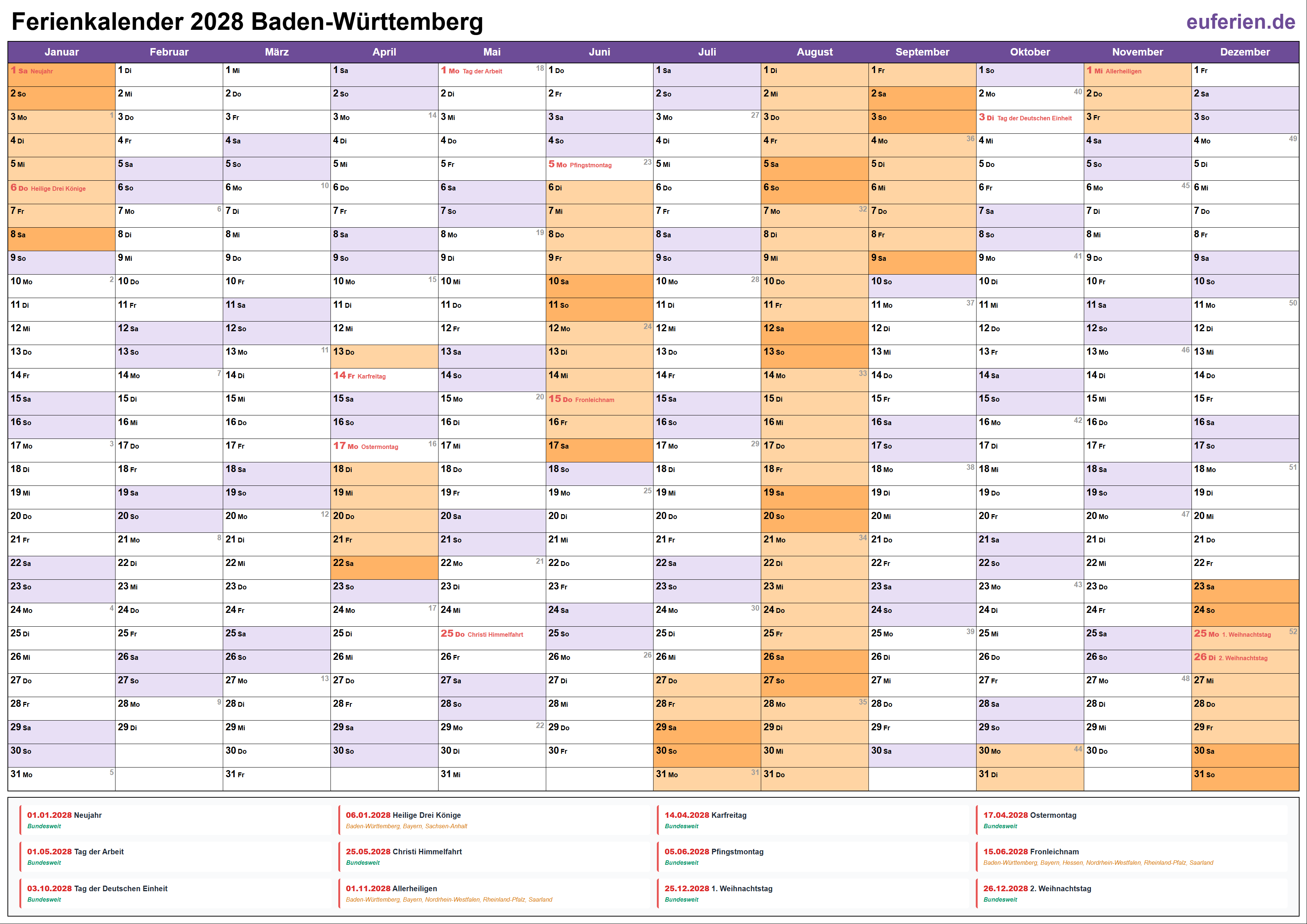 Schulferien und Feiertage in Baden-Württemberg 2028