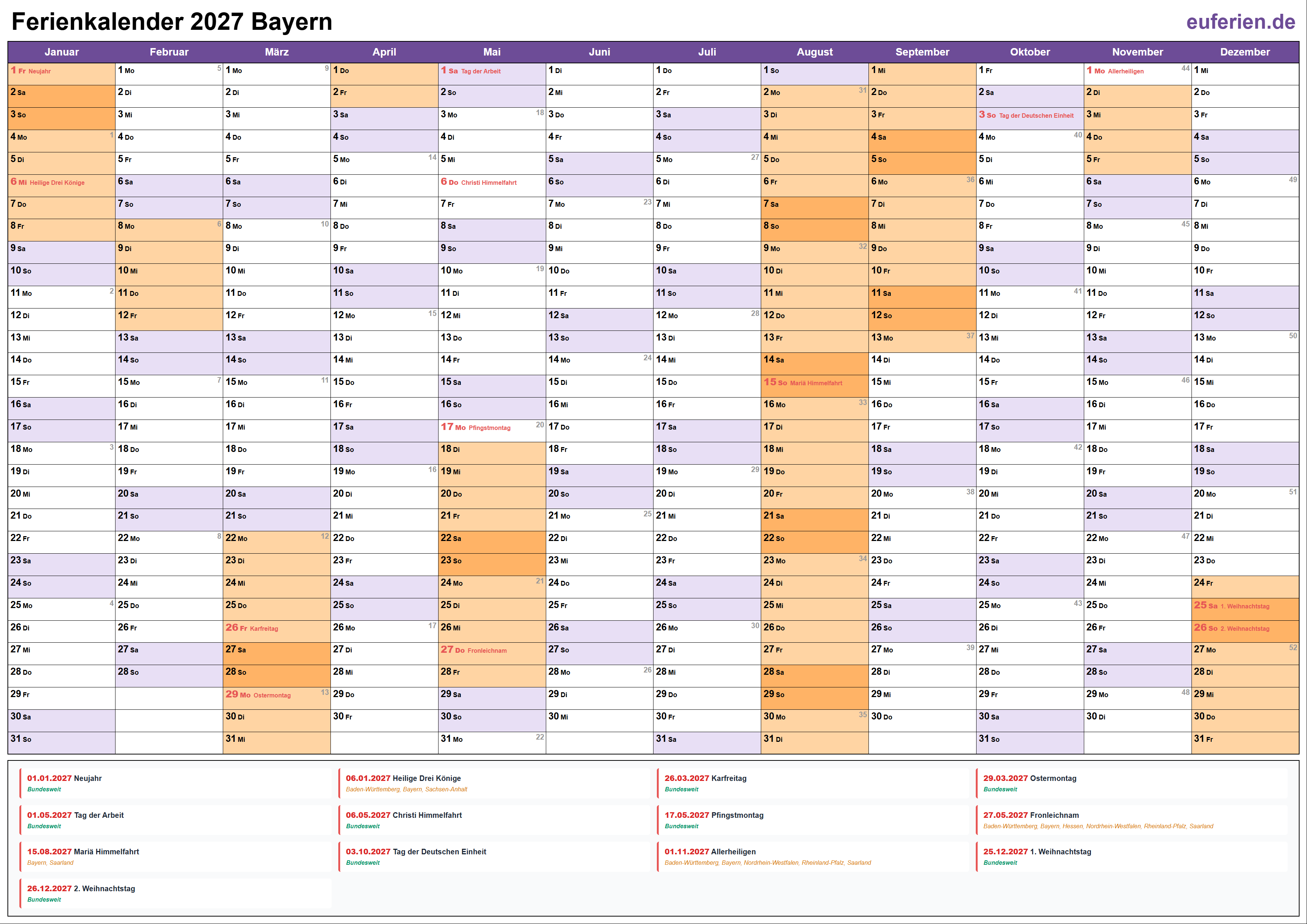 Ferienkalender Bayern 2027 herunterladen