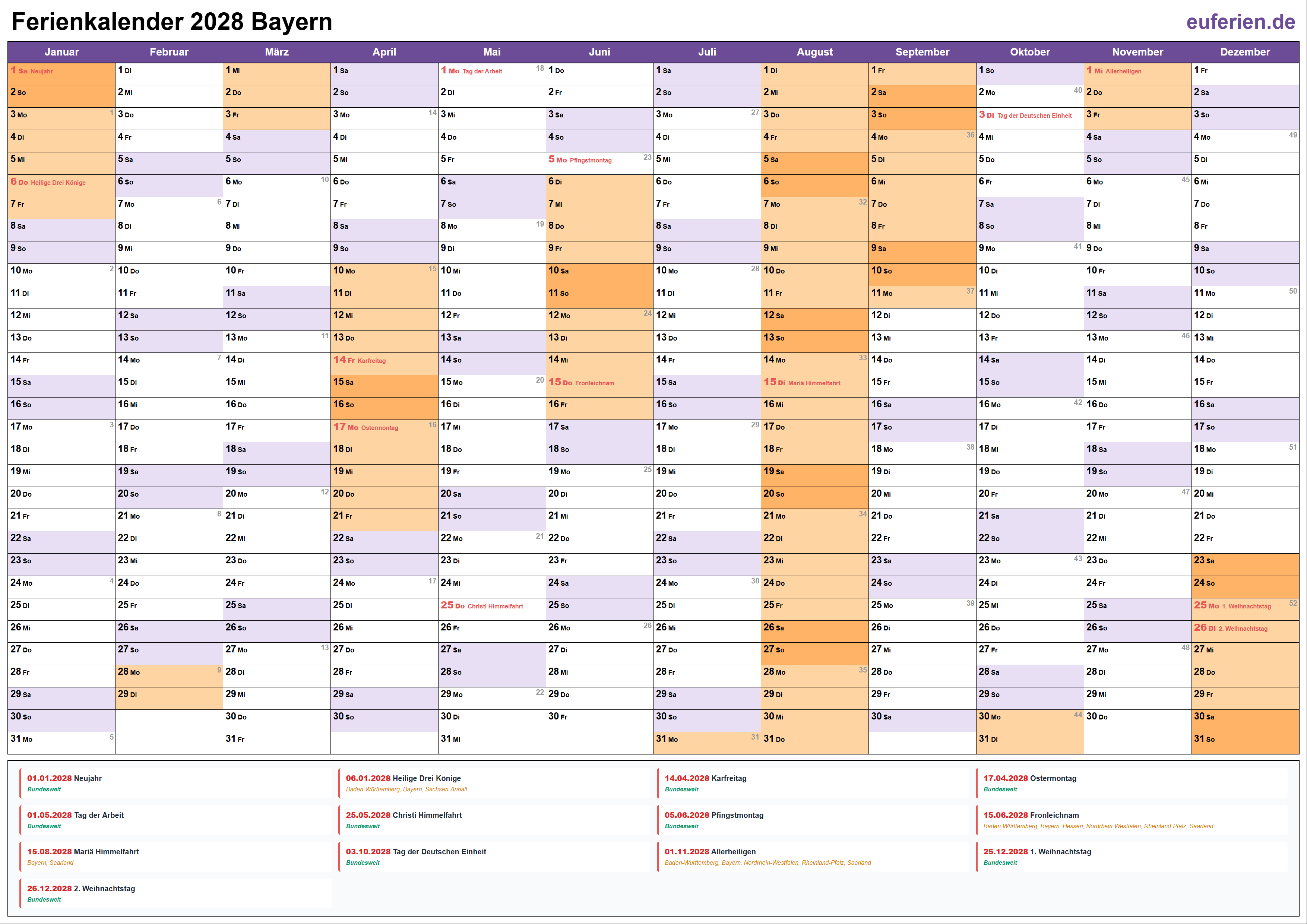 Schulferien Bayern 2028 – Ferien & Feiertage