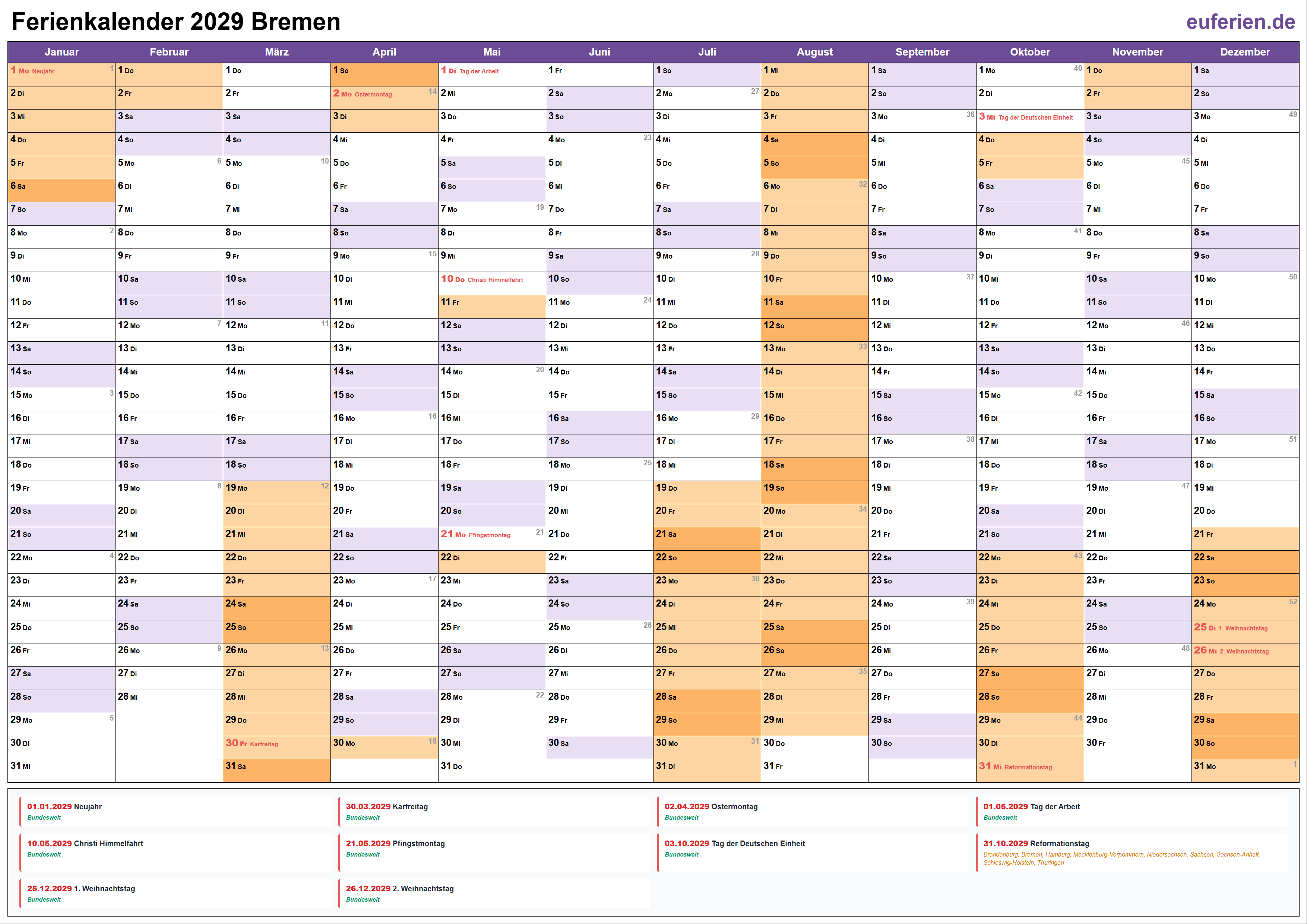 Schulferien Bremen 2029 – Ferien & Feiertage