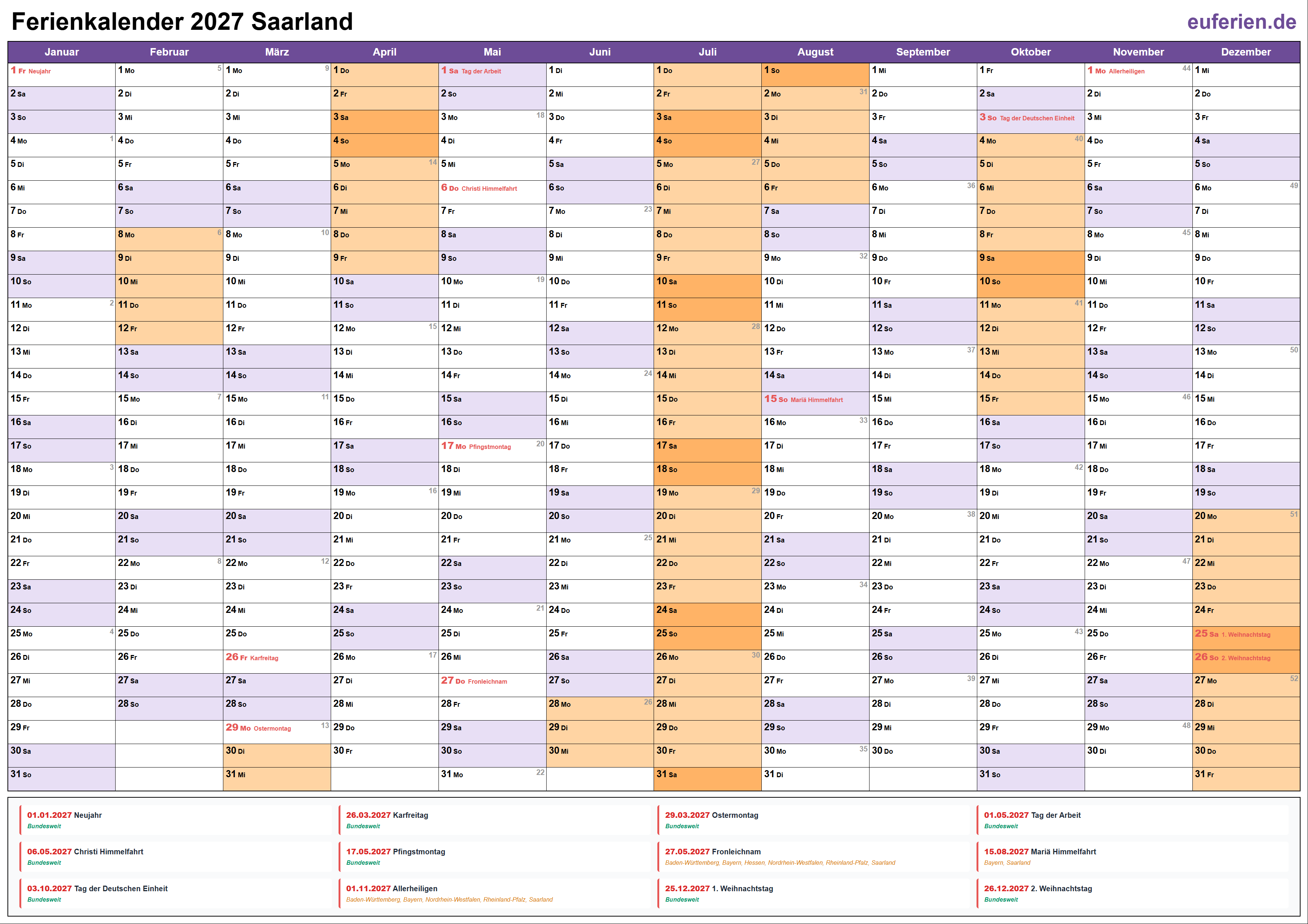 Schulferien Saarland 2027 – Ferien & Feiertage