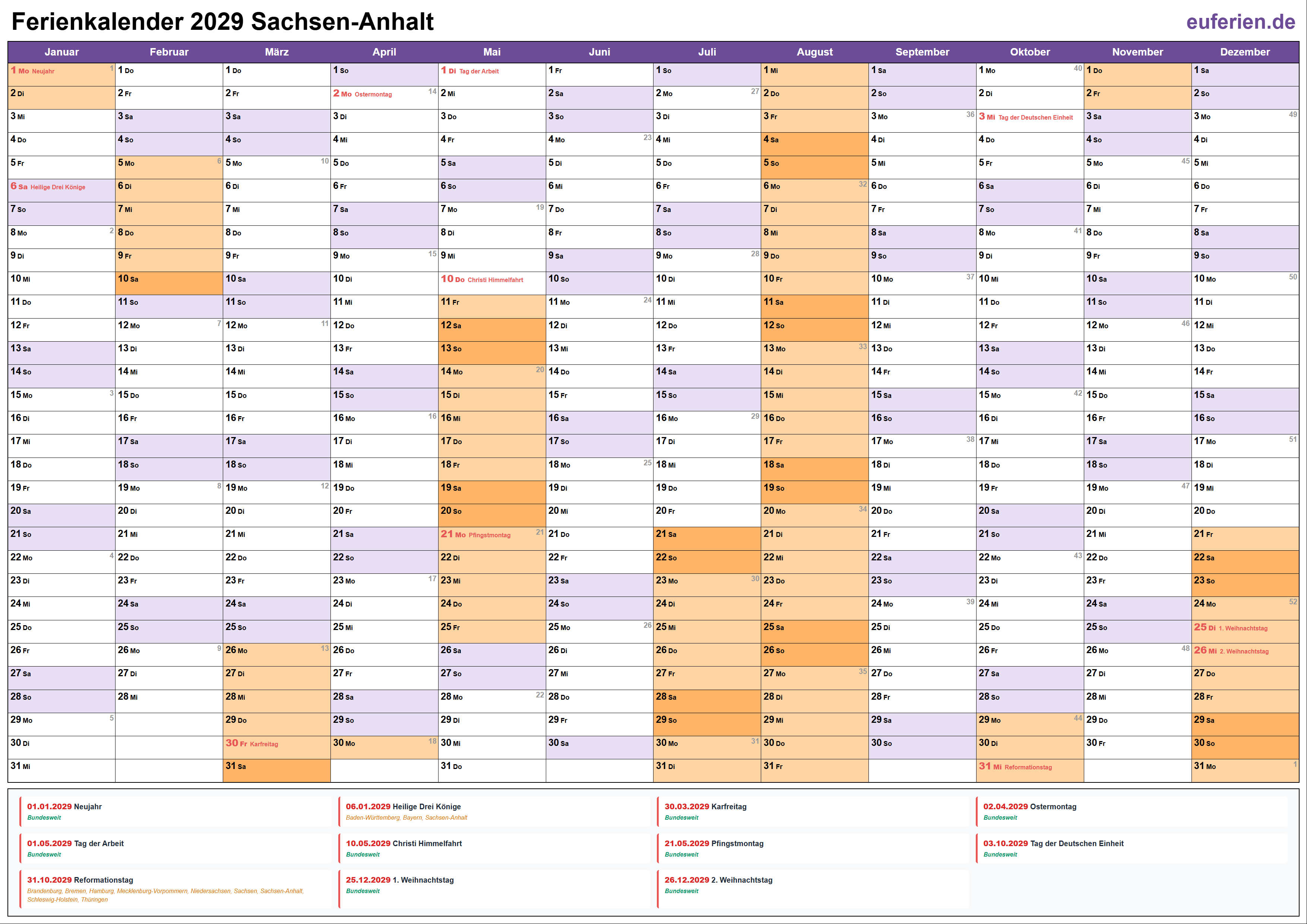 Schulferien Sachsen-Anhalt 2029 – Ferien & Feiertage