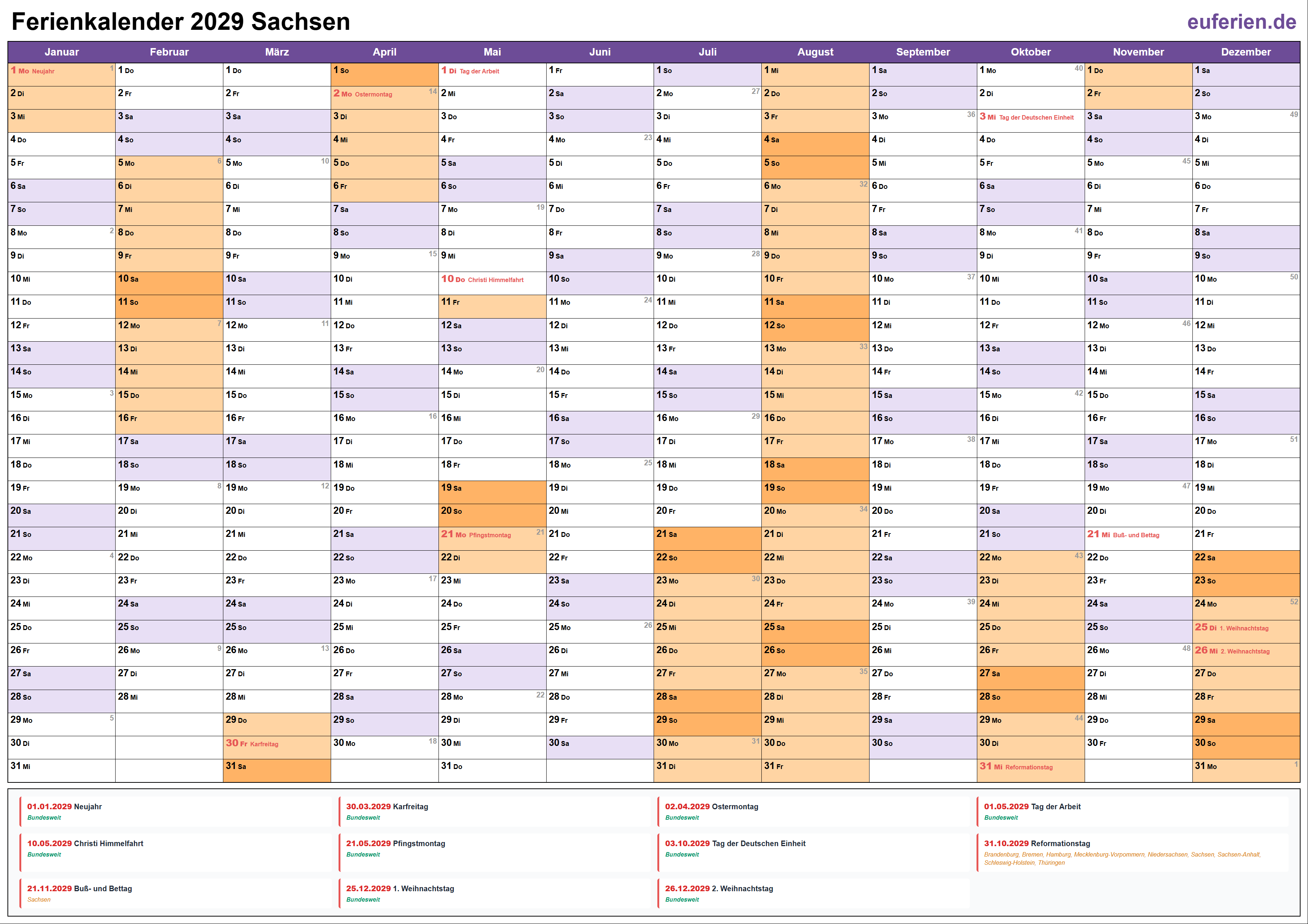 Schulferien Sachsen 2029 – Ferien & Feiertage