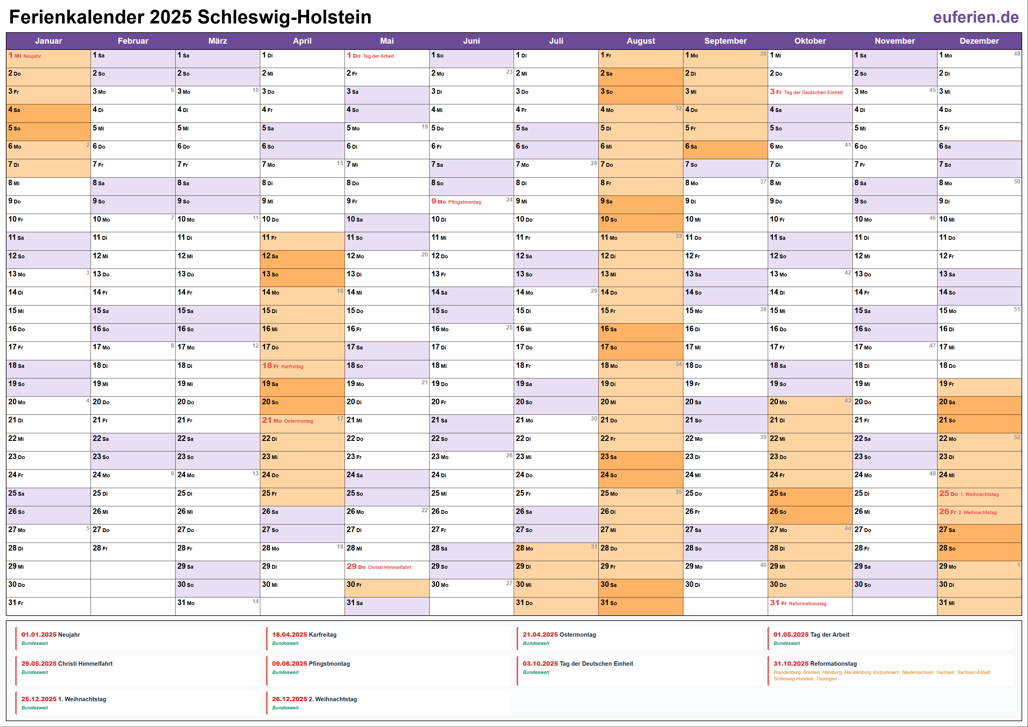 Ferienkalender Schleswig-Holstein 2025 herunterladen