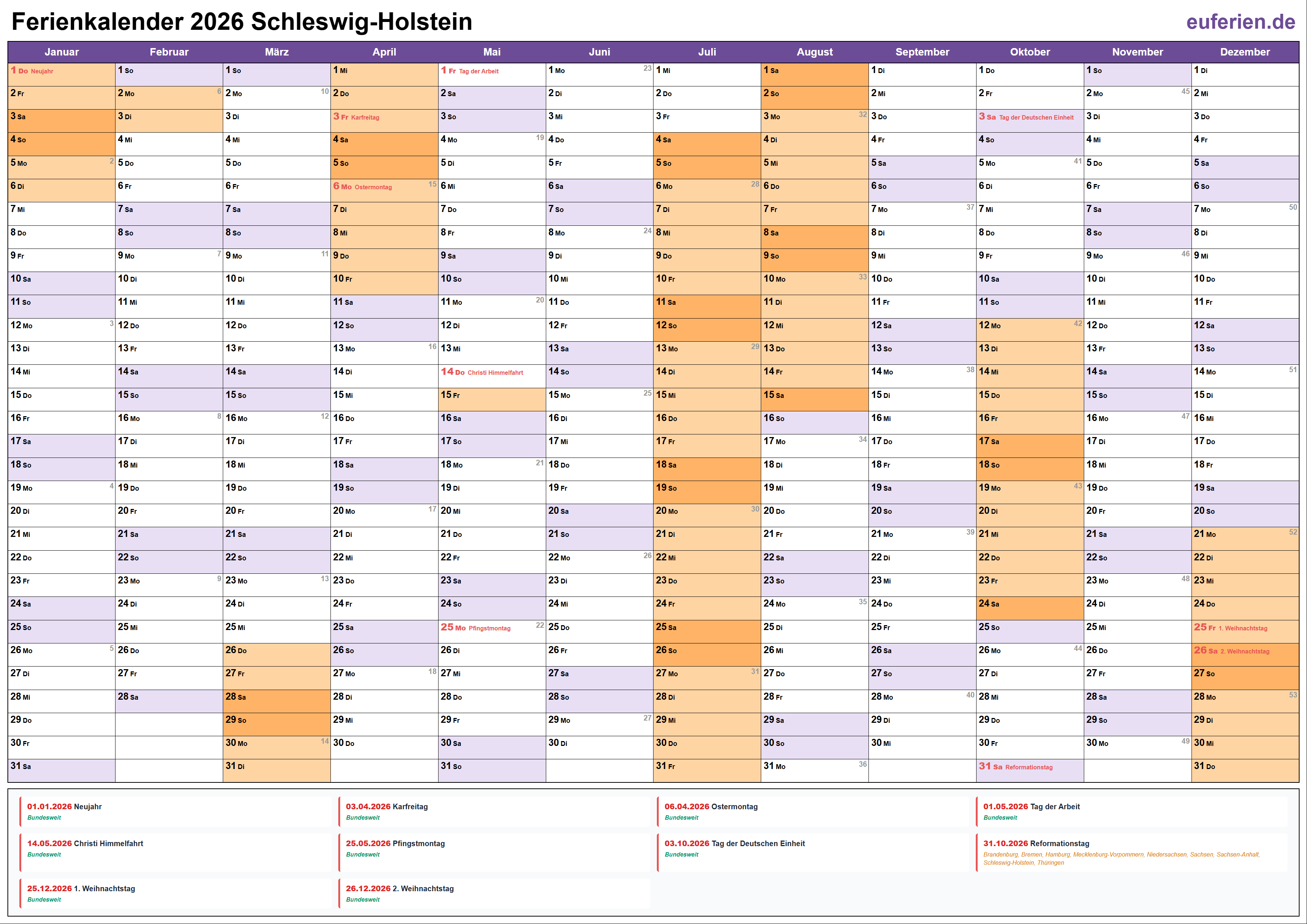 Ferienkalender Schleswig-Holstein 2026 herunterladen