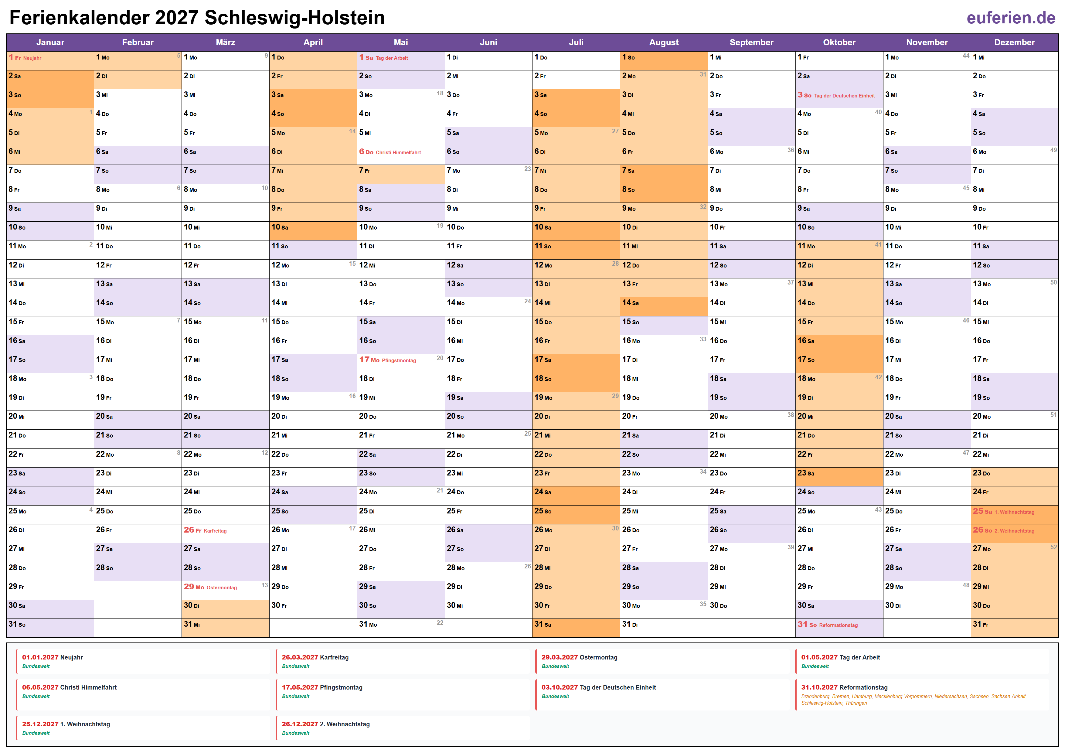 Ferienkalender Schleswig-Holstein 2027 herunterladen