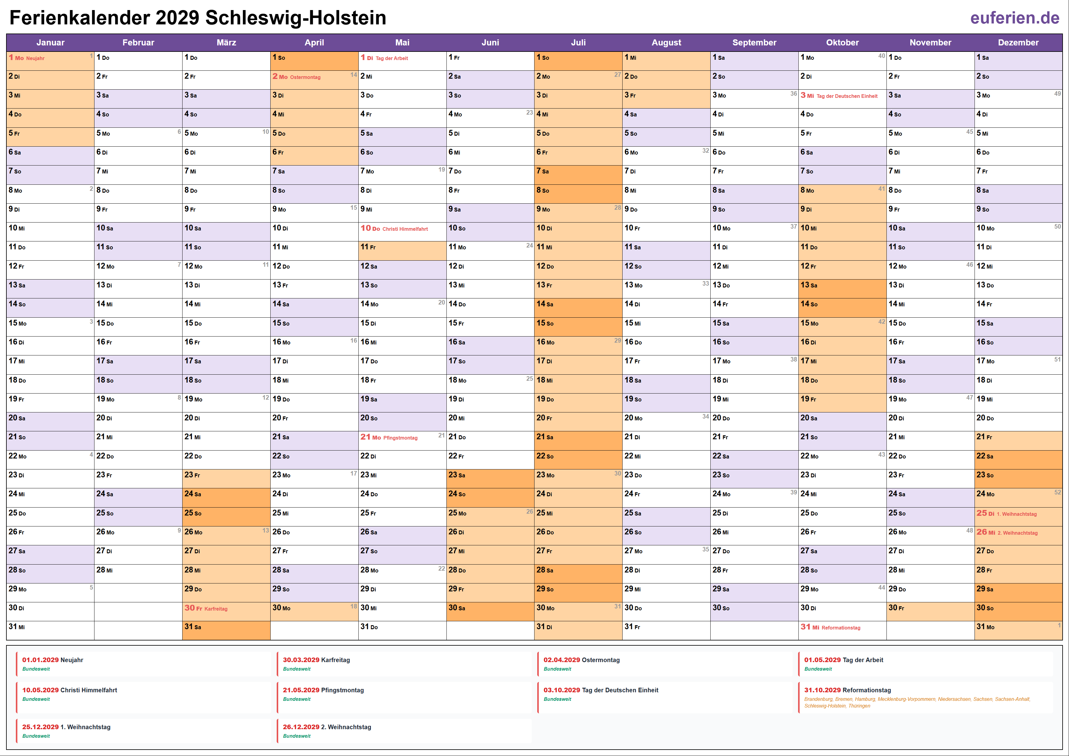 Schulferien Schleswig-Holstein 2029 – Ferien & Feiertage
