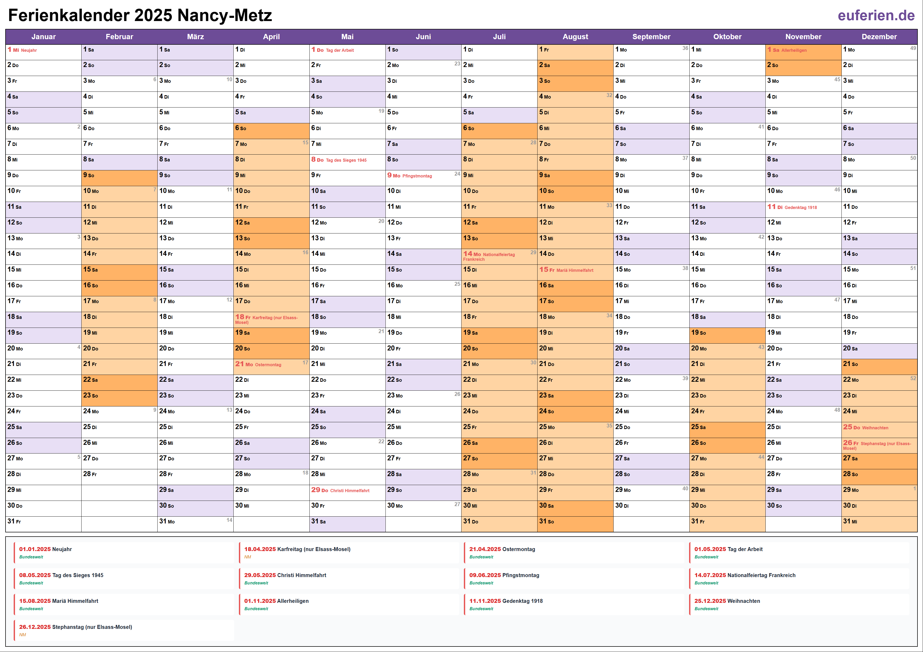 Ferienkalender Nancy-Metz 2025 herunterladen