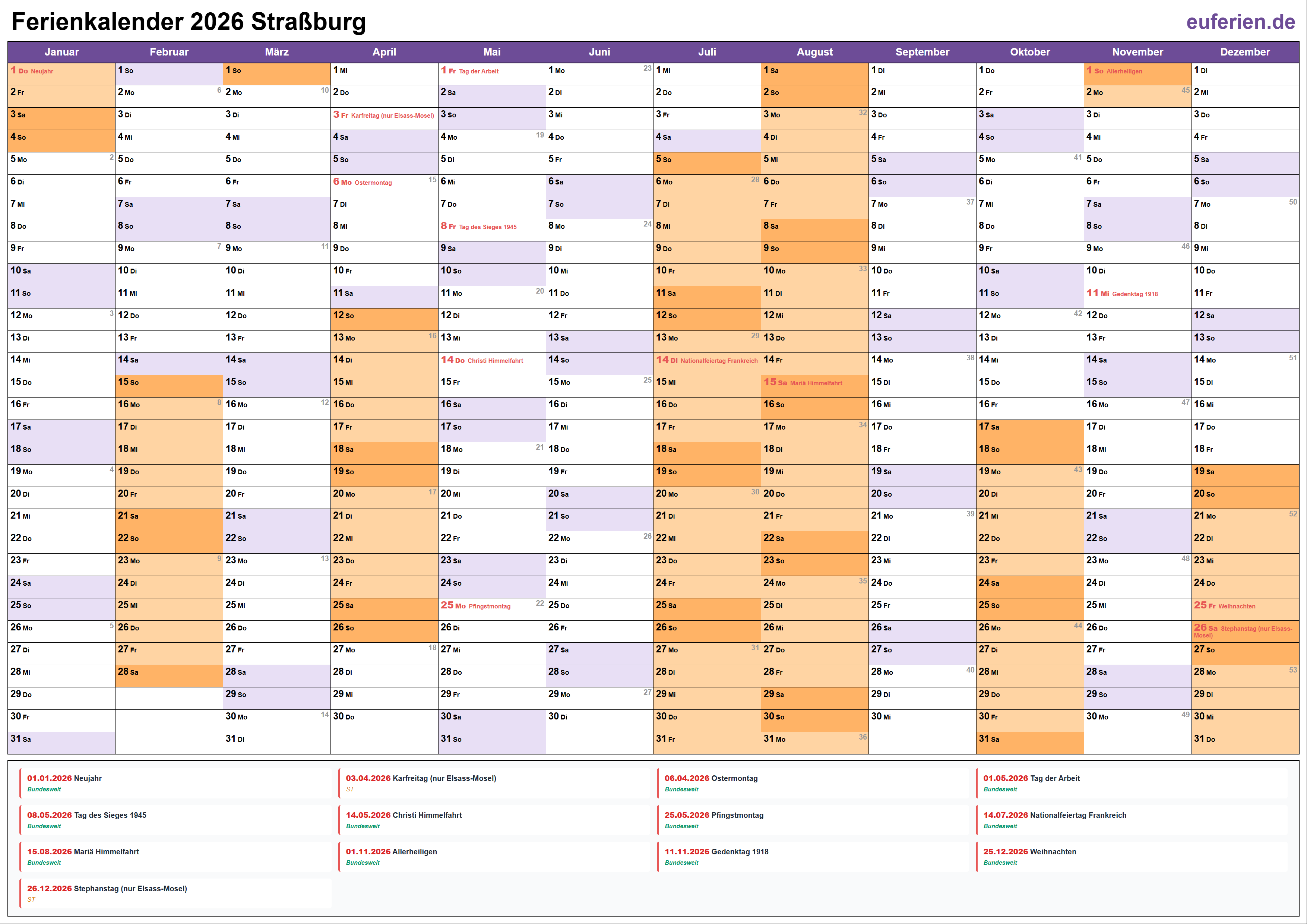 Ferienkalender Straßburg 2026 herunterladen