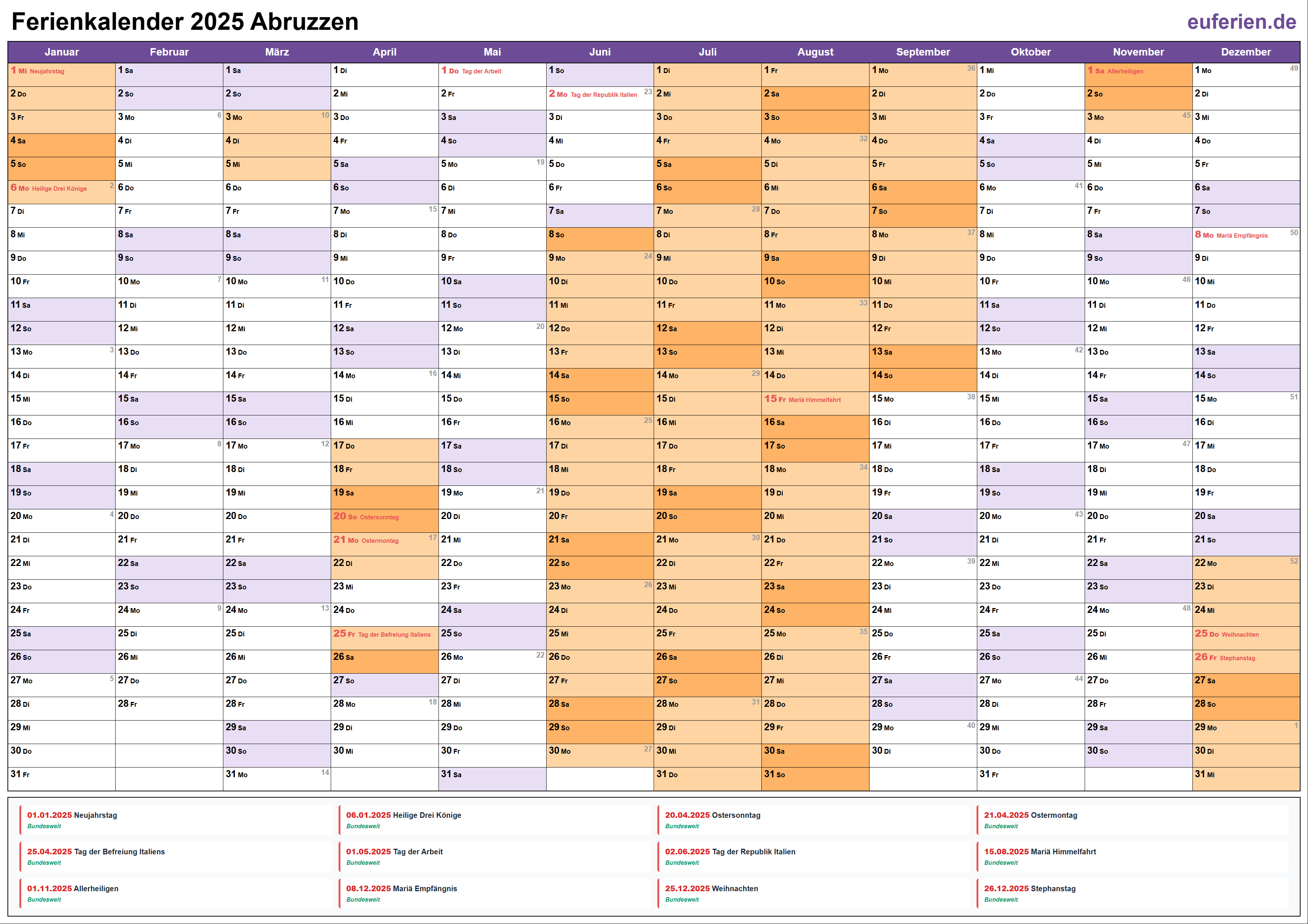 Ferienkalender Abruzzen 2025 herunterladen
