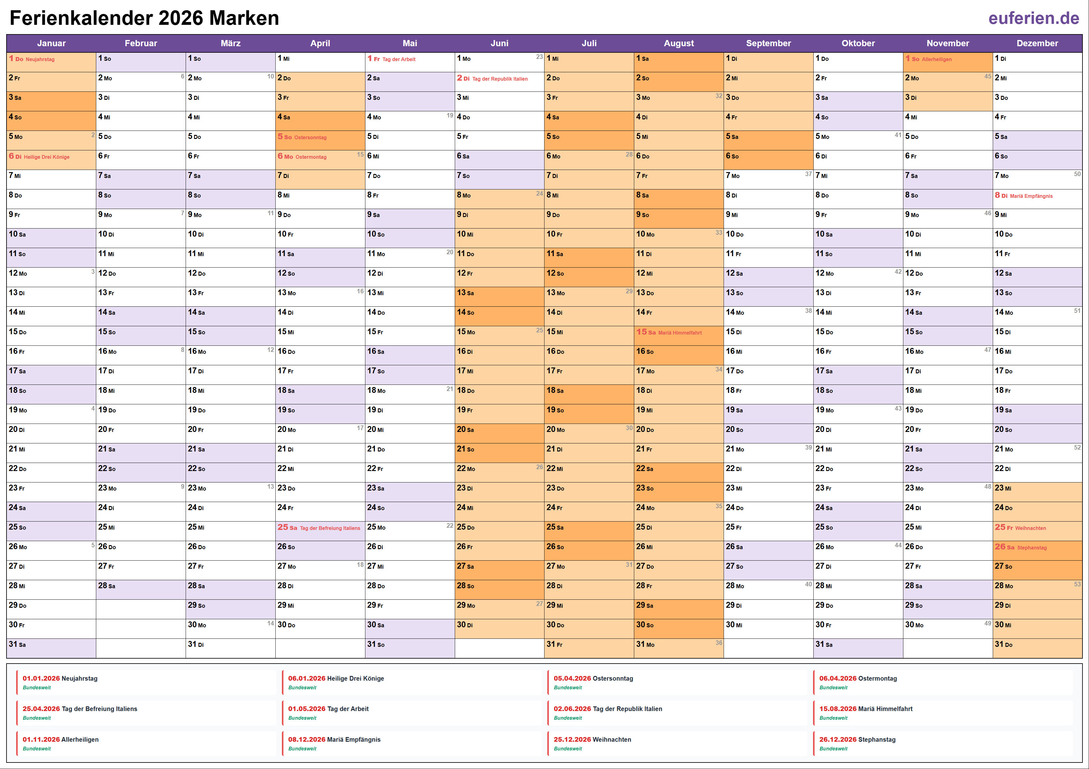 Schulferien und Feiertage in Marken 2026