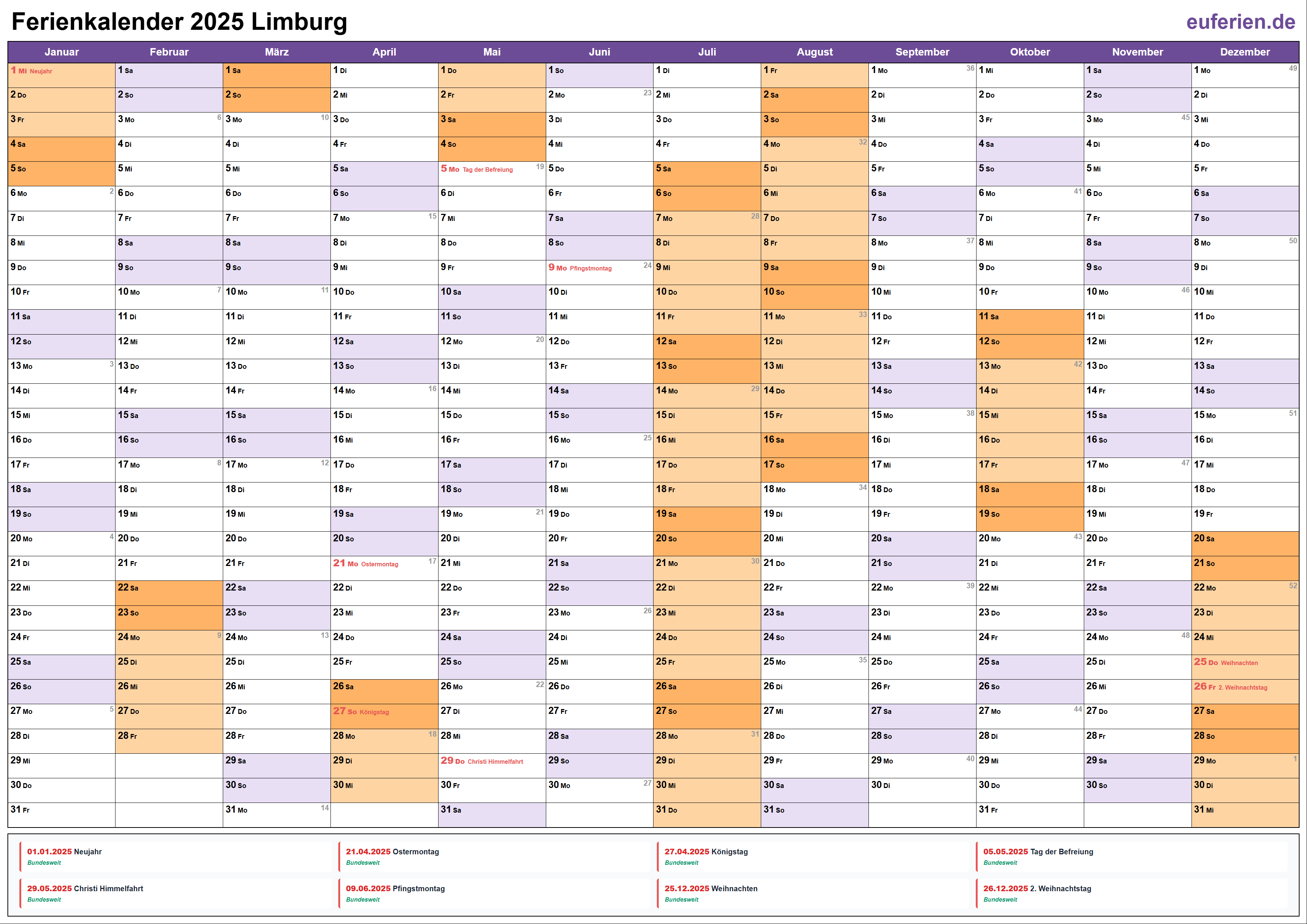 Ferienkalender Limburg 2025 herunterladen