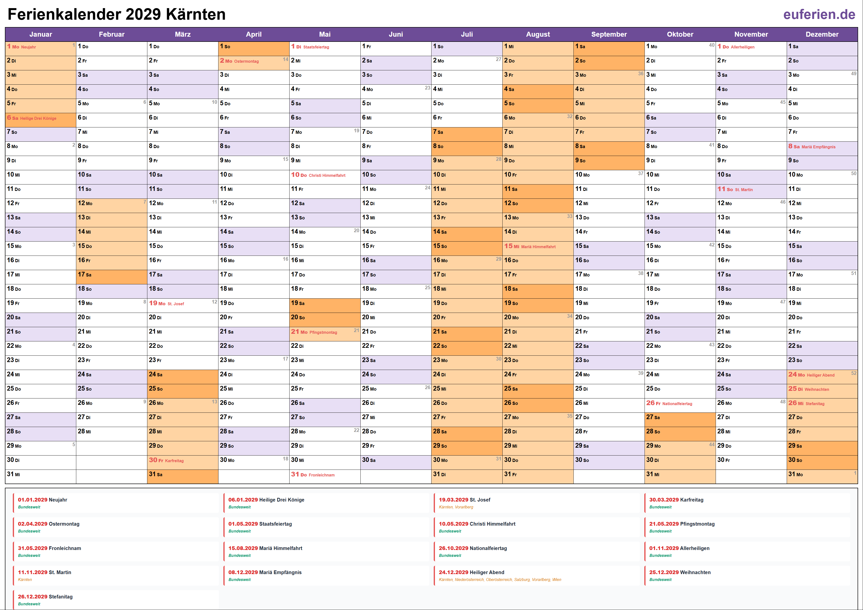 Schulferien Kärnten 2029 – Ferien & Feiertage