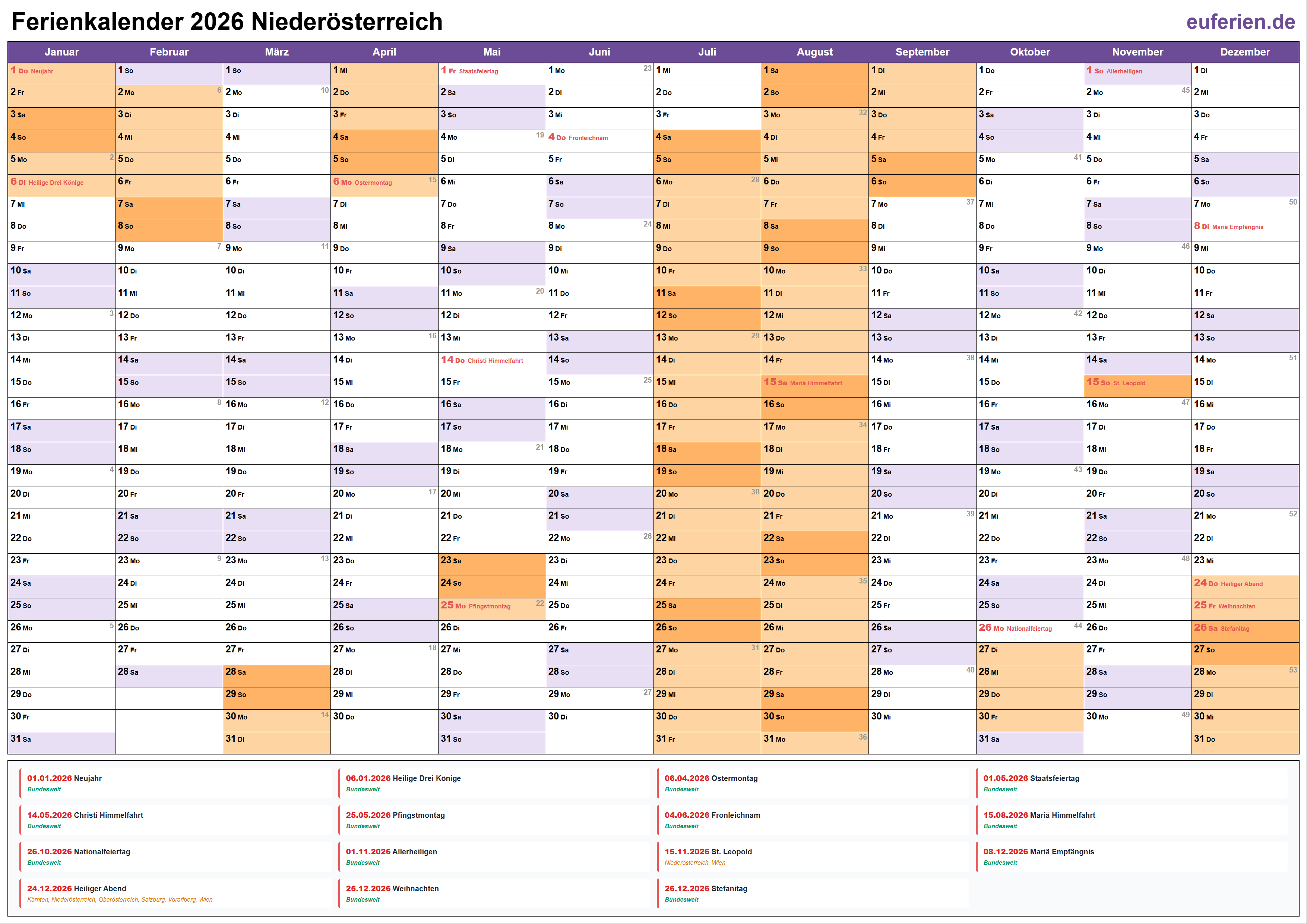 Ferienkalender Niederösterreich 2026 herunterladen