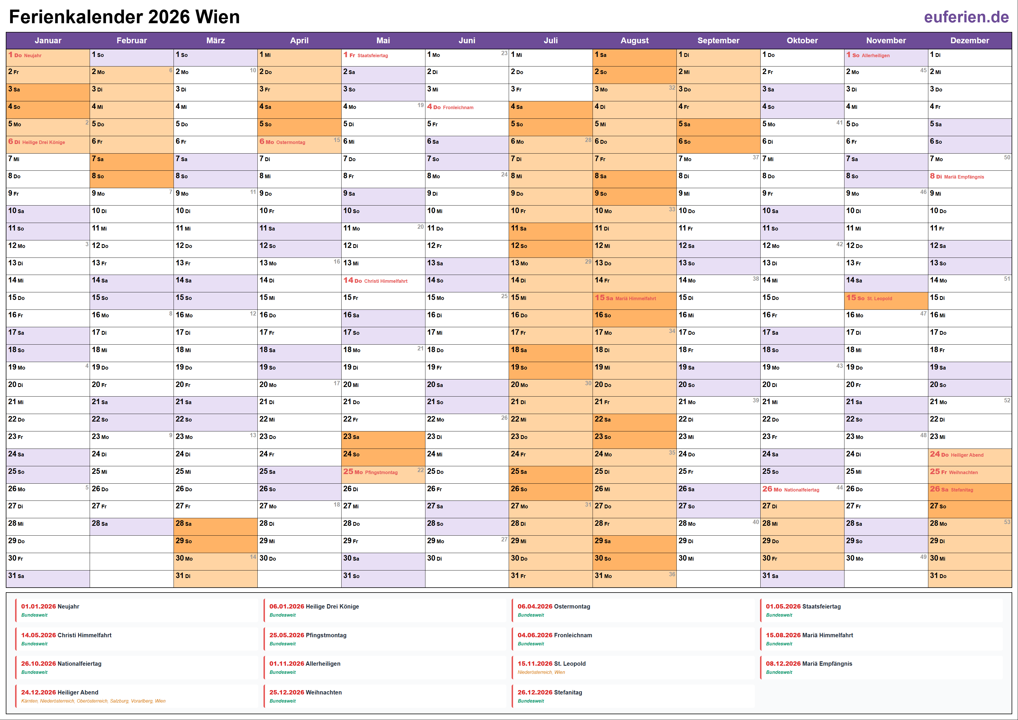 Ferienkalender Wien 2026 herunterladen