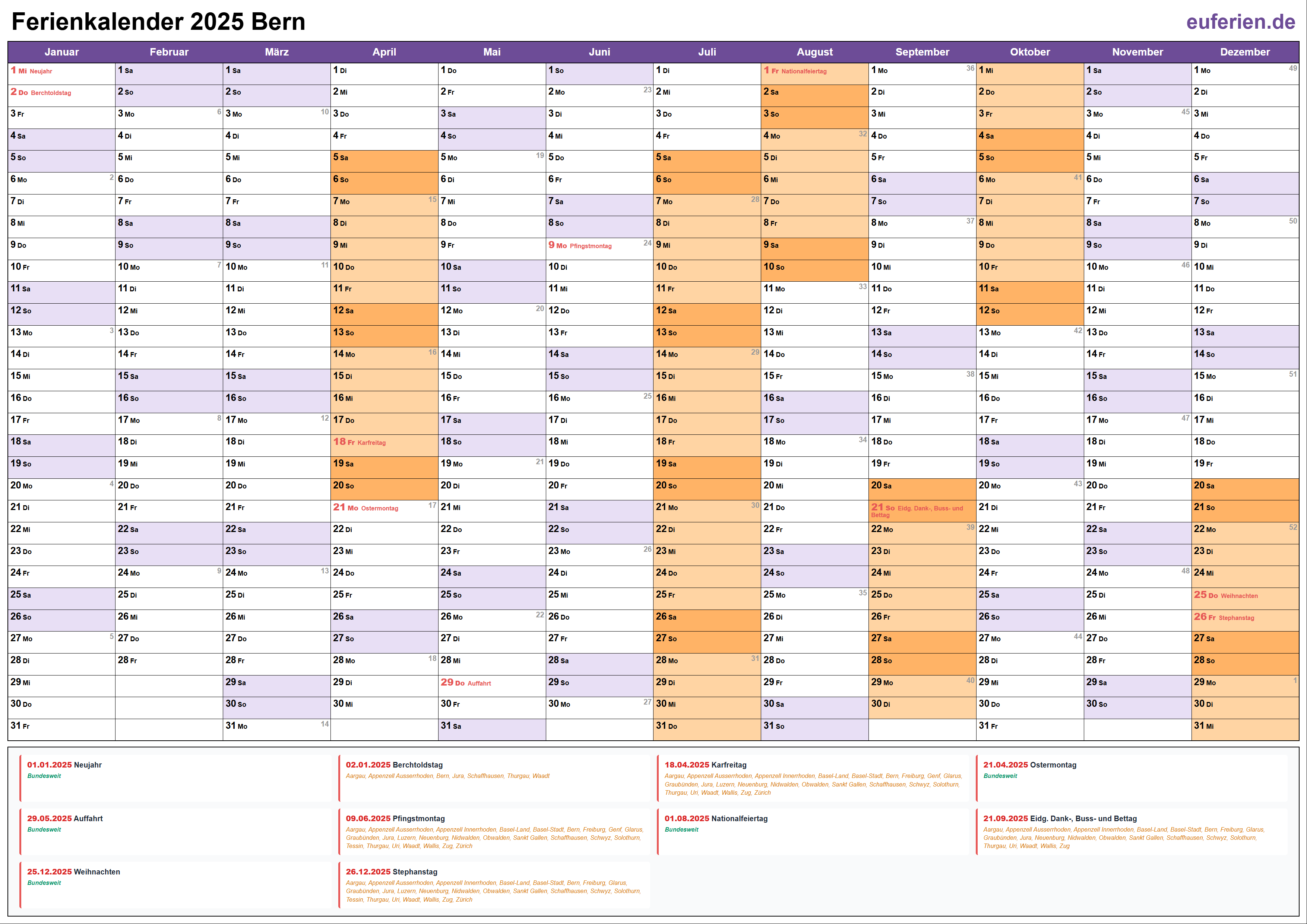 Ferienkalender Bern 2025 herunterladen