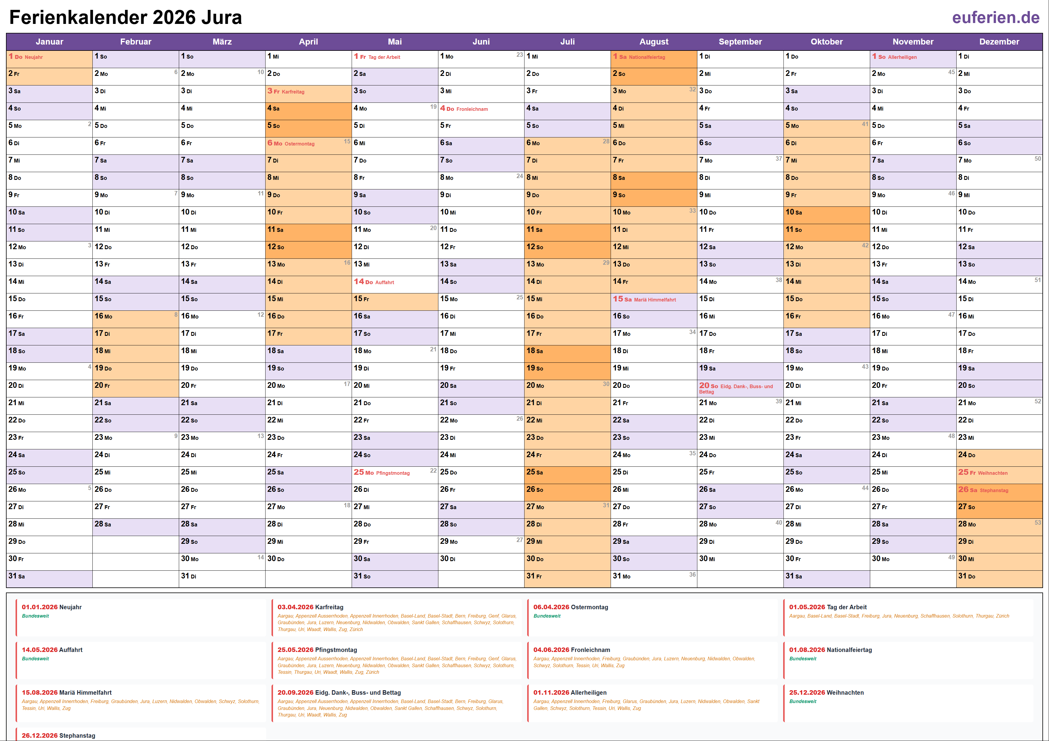 Ferienkalender Jura 2026 herunterladen