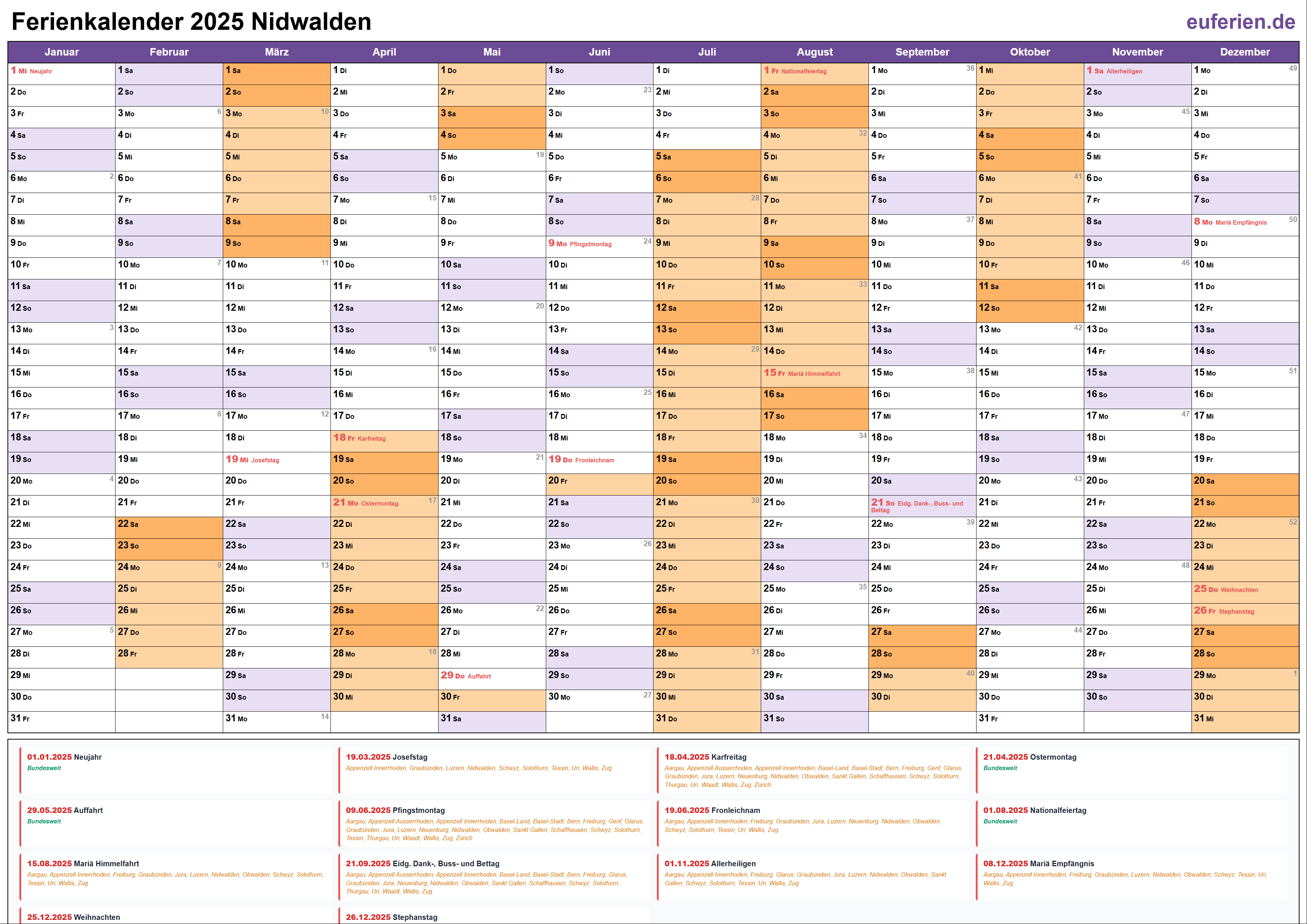 Schulferien und Feiertage in Nidwalden 2025