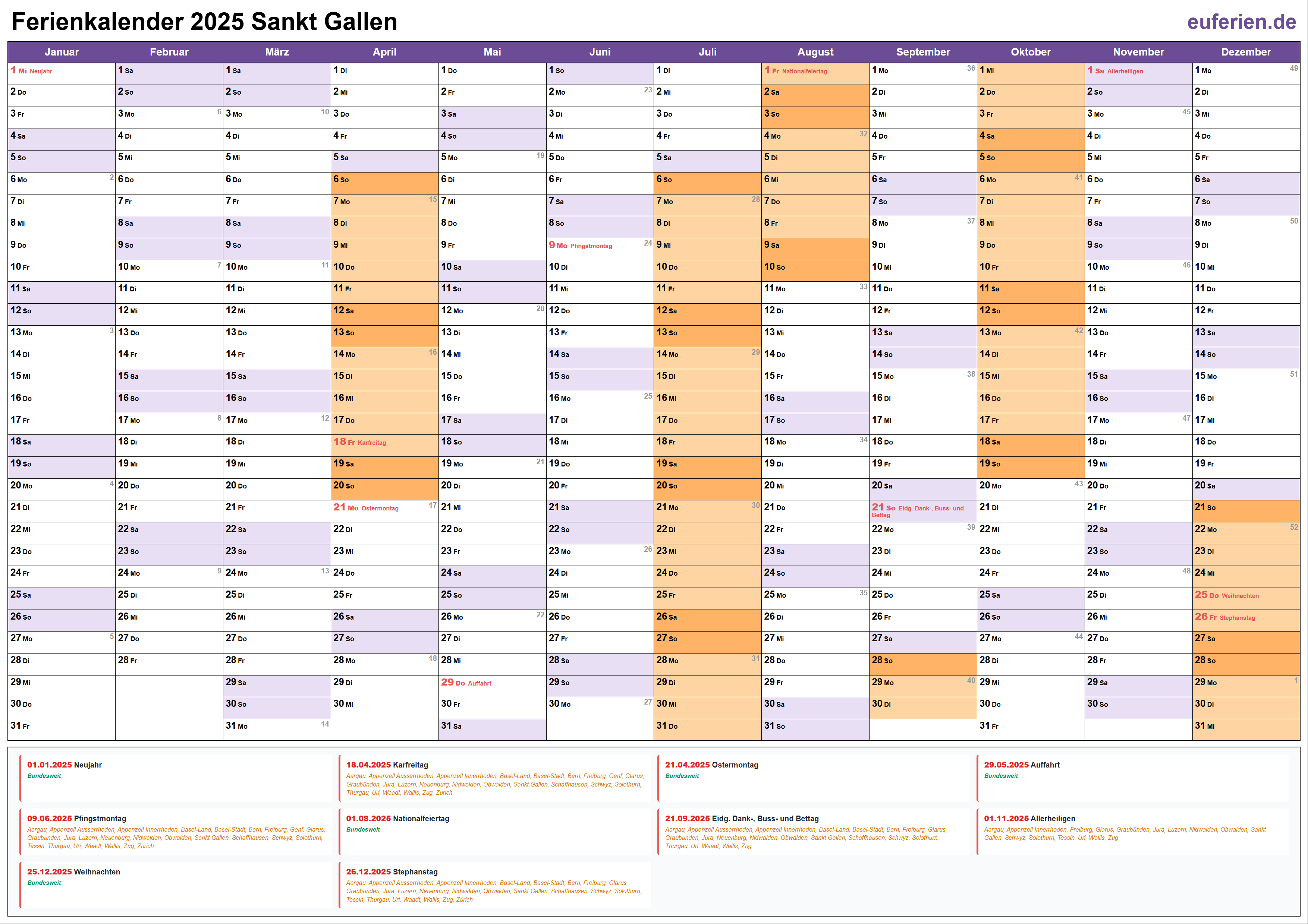 Ferienkalender Sankt Gallen 2025 herunterladen