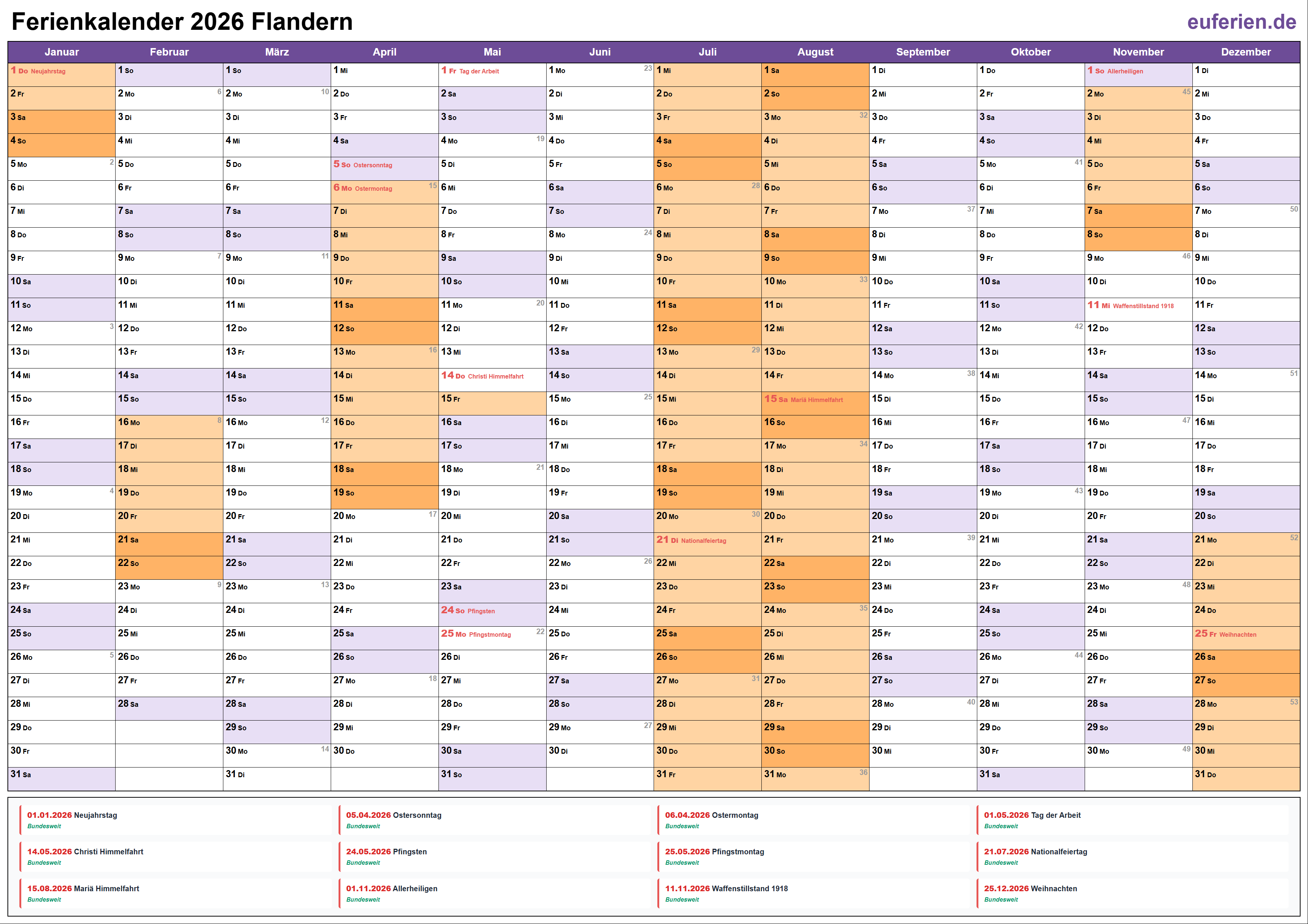 Ferienkalender Flandern 2026 herunterladen