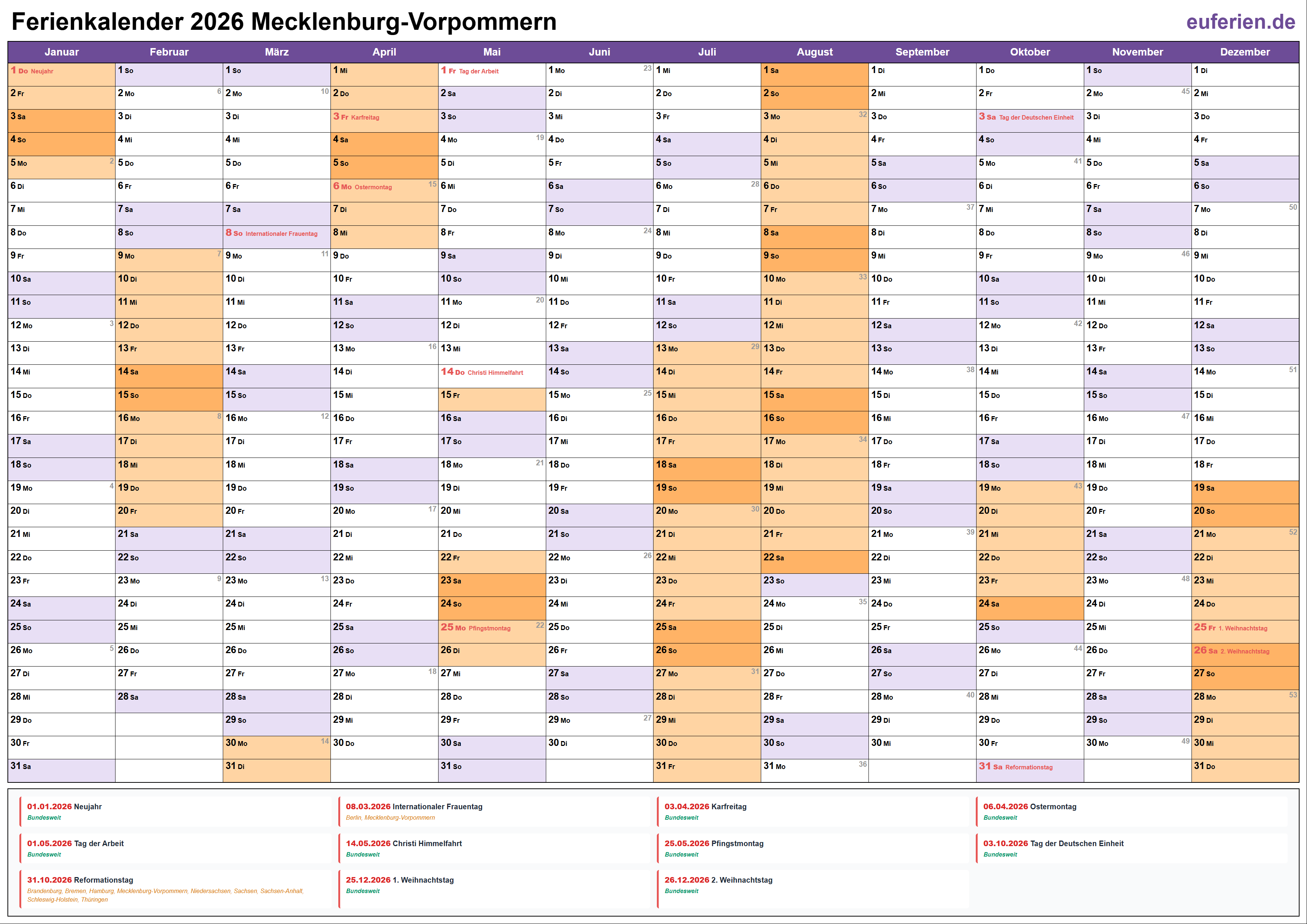 Schulferien und Feiertage in Mecklenburg-Vorpommern 2026