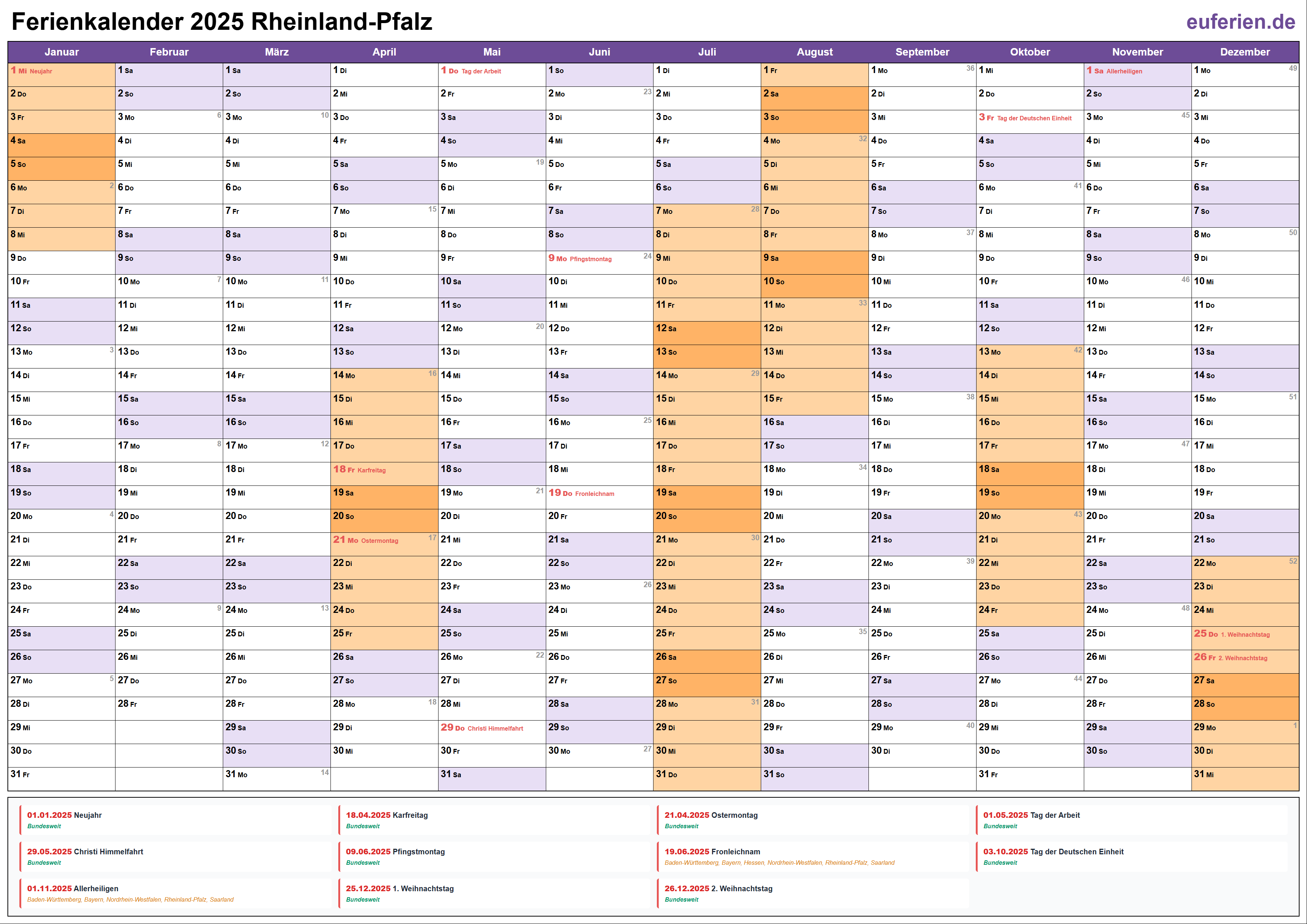 Ferienkalender Rheinland-Pfalz 2025 herunterladen
