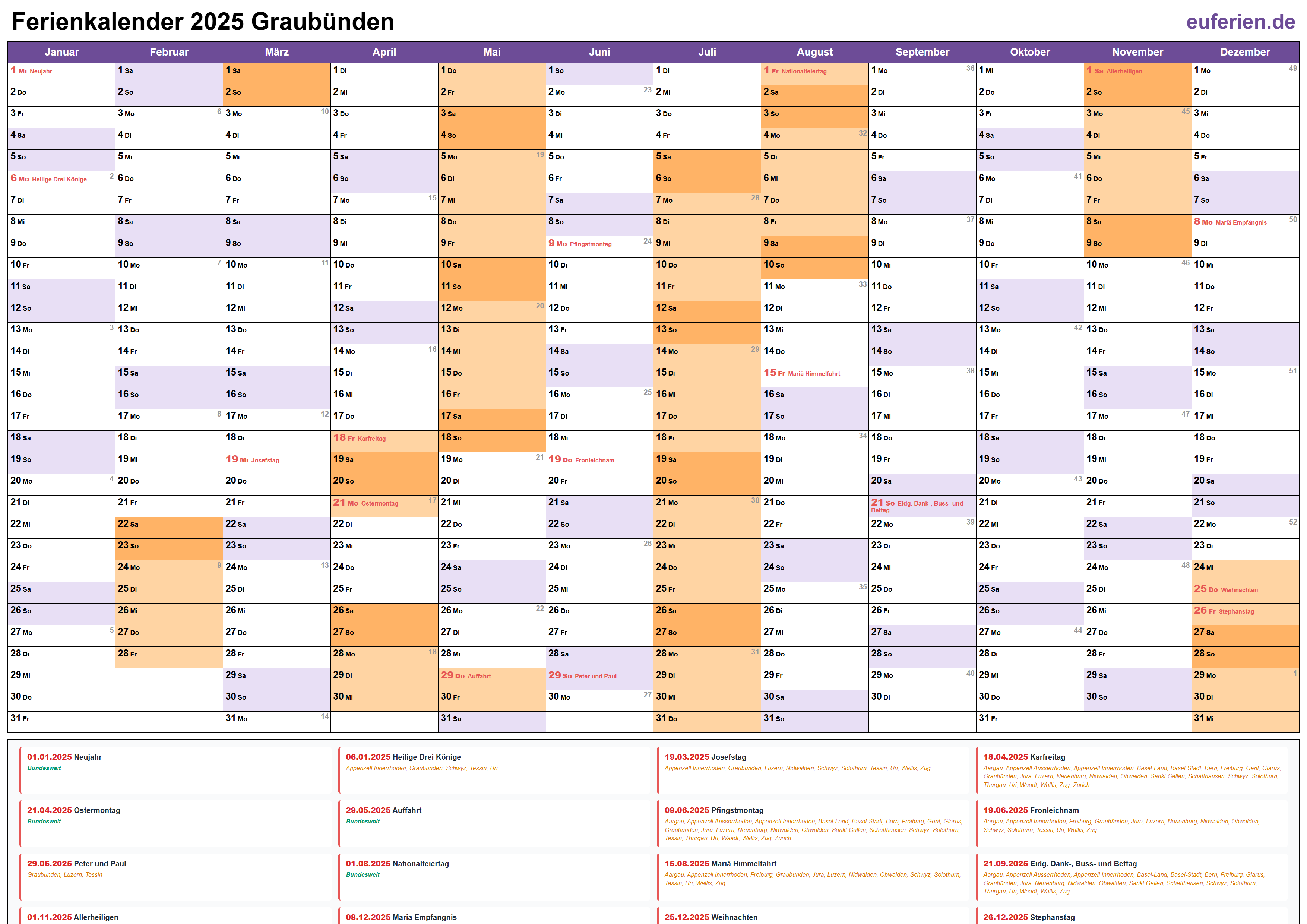 Schulferien, Feiertage und Ferien in Graubünden im Jahr 2025 im Überblick