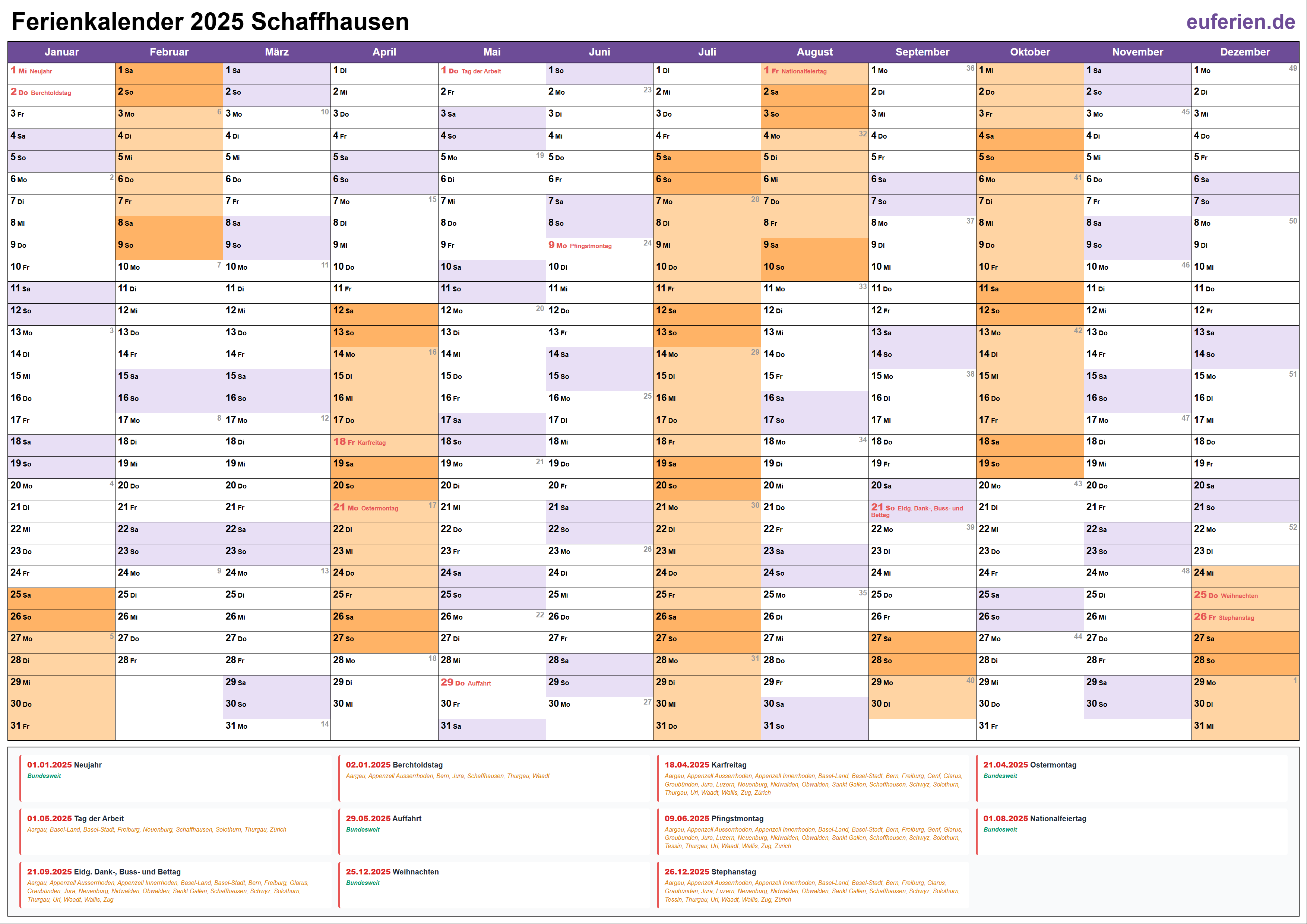 Ferienkalender Schaffhausen 2025 herunterladen