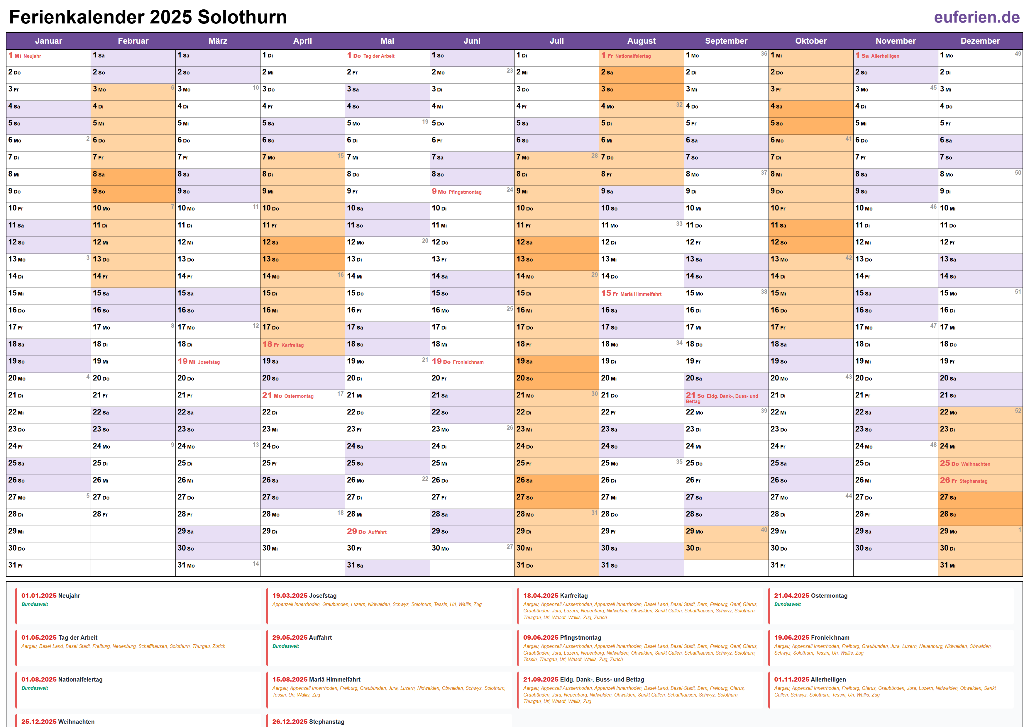 Ferienkalender Solothurn 2025 herunterladen